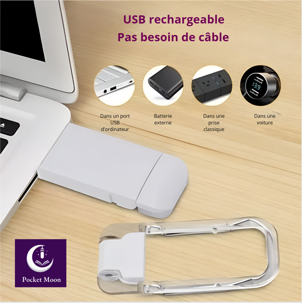 Apportez une touche de confort et de sérénité à vos lectures avec la veilleuse LED rechargeable par USB.